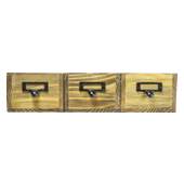 市販のカラーボックスに横に3個収まるスリムな木箱です。